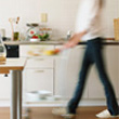 LDKを入るとひろびろと広がるテラコッタ調のダイニングスペース。ローウォールで区切られたステップ上のリビングスペースは圧迫感もなく、空間にリズムを与えます。ステップに腰掛けて寛ぐのもアリ! |