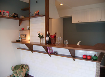 | オープンキッチンはカウンター付き。ここで朝ゴハンとかいかがですか? |